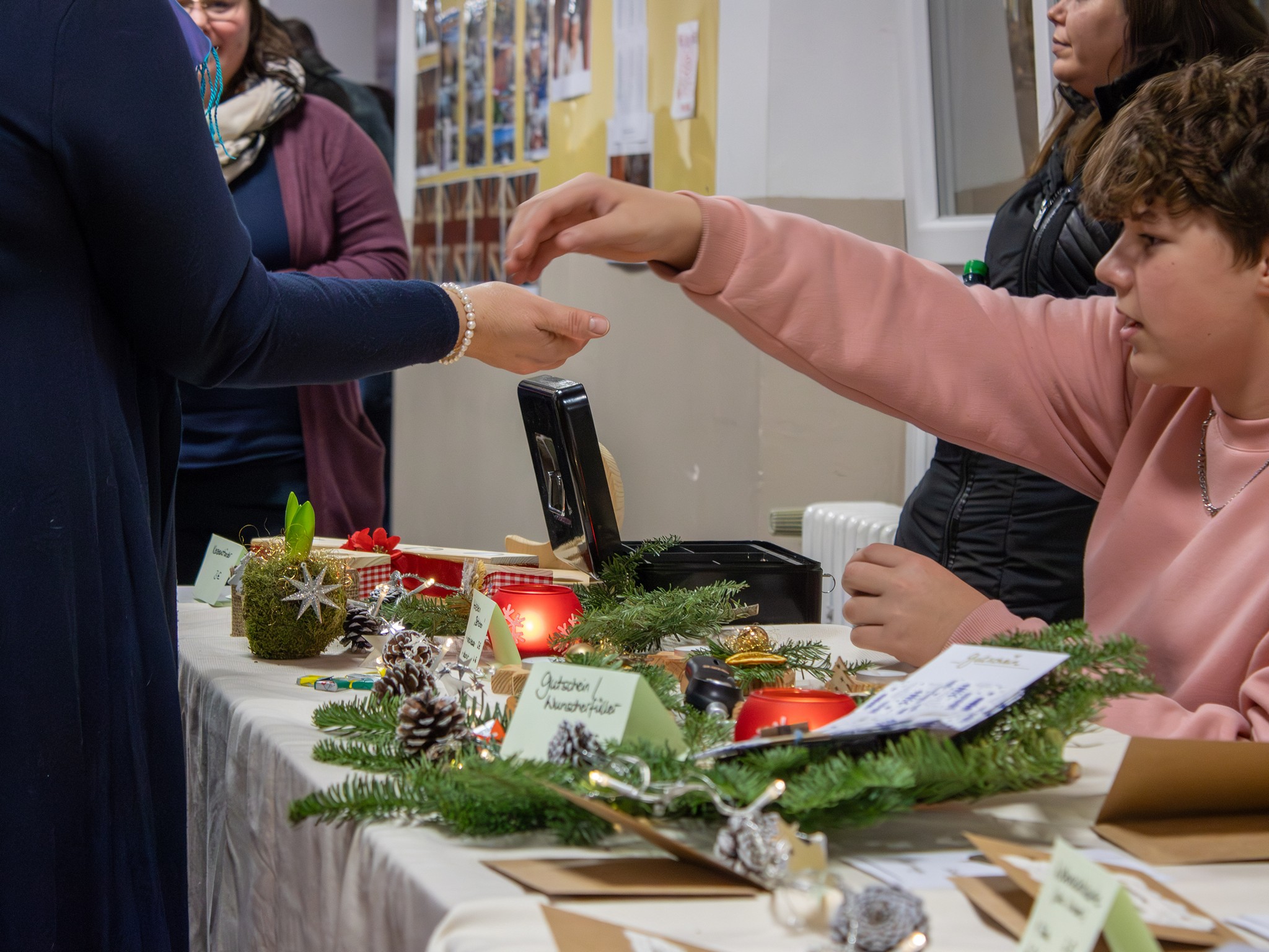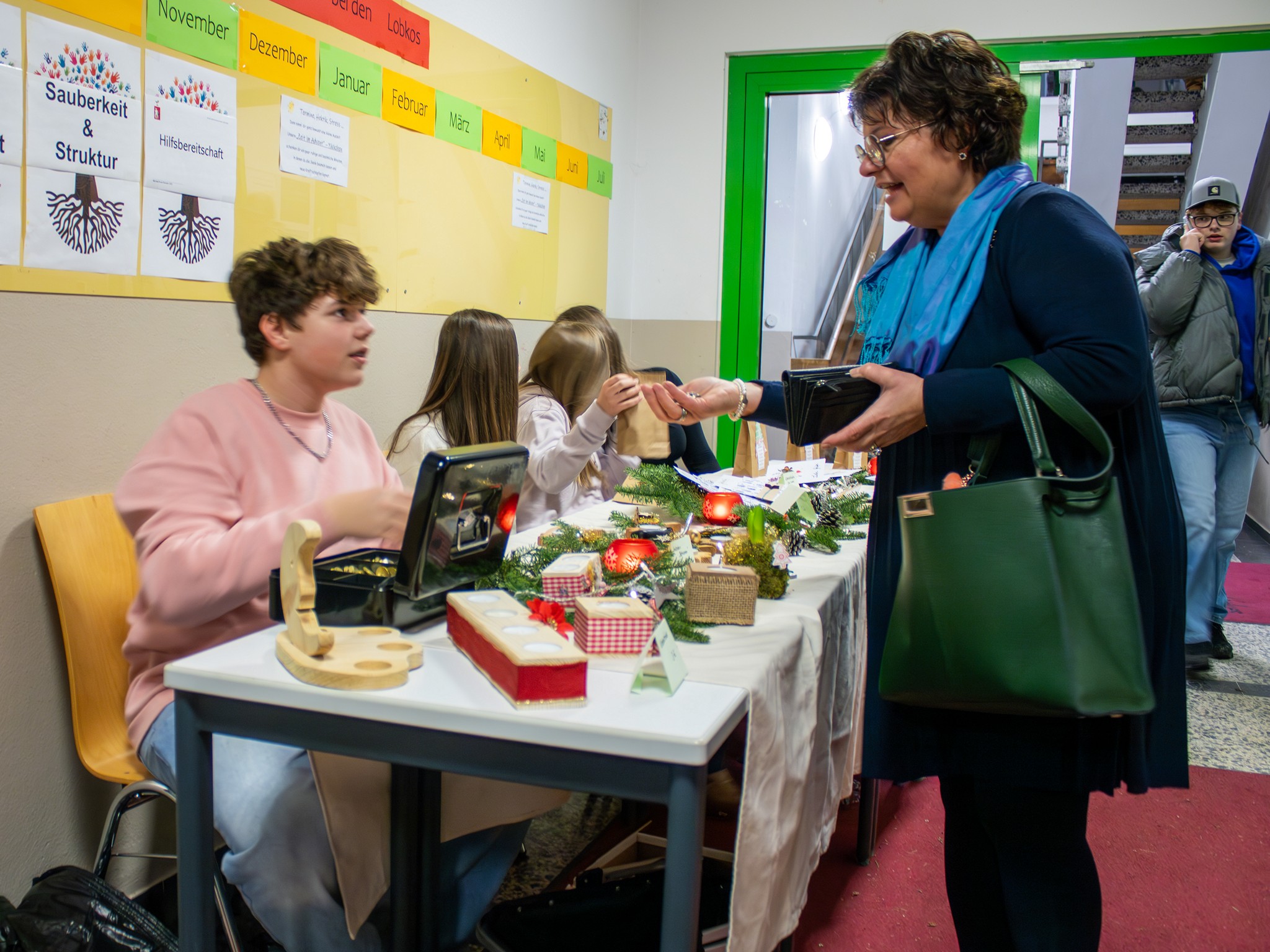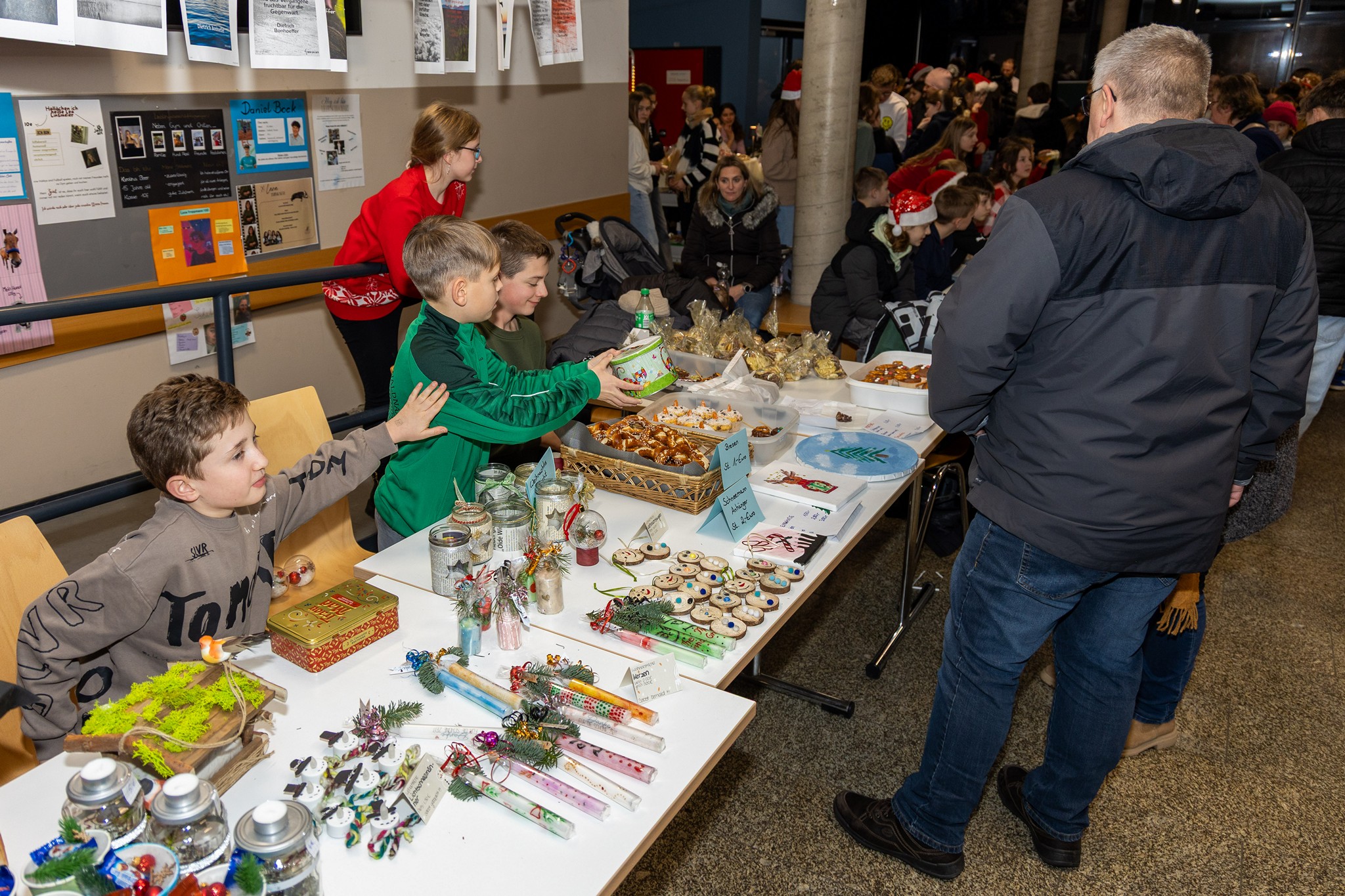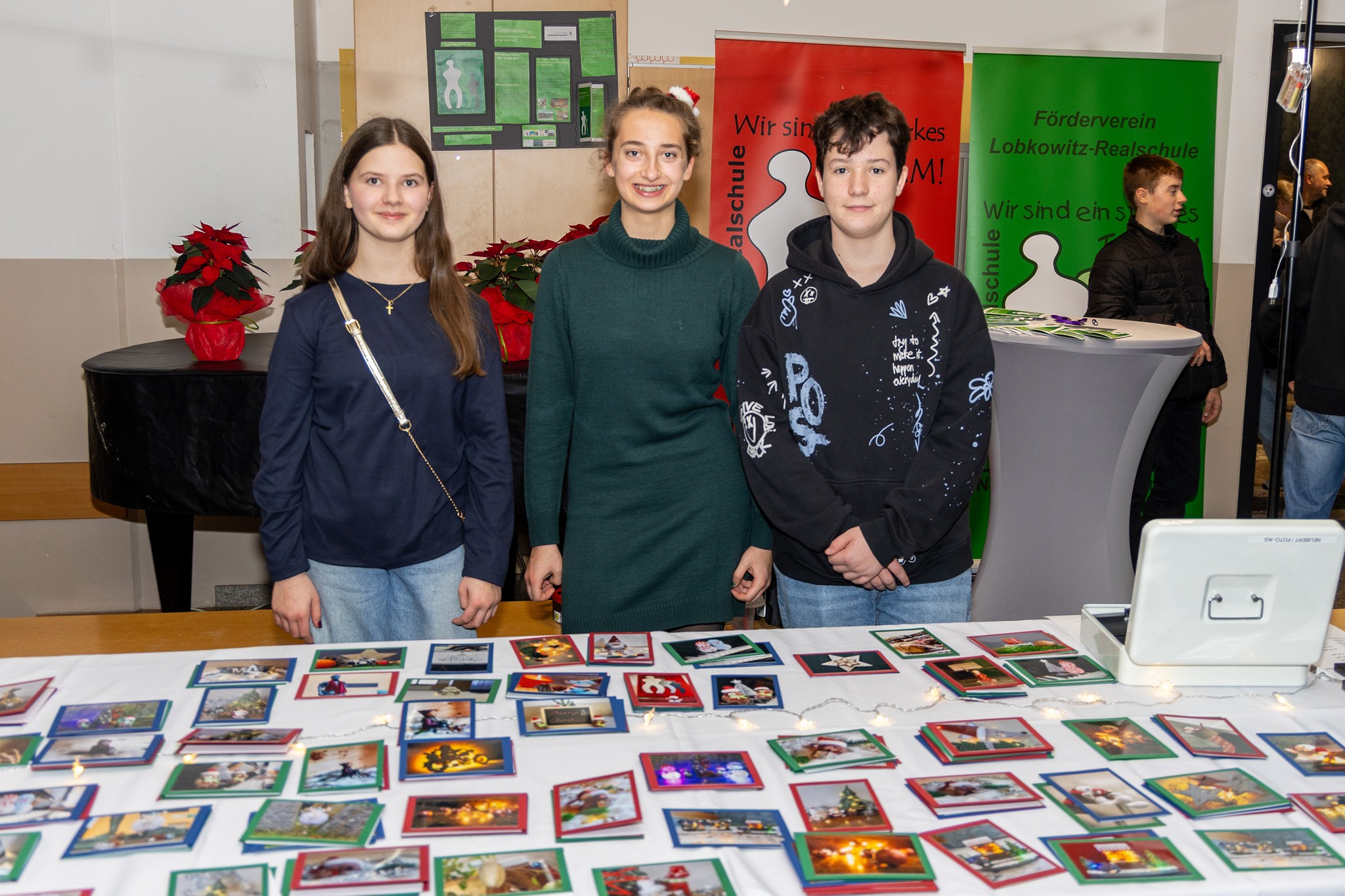 Traditionsgemäß laden die Lobkos immer am Donnerstag vor dem ersten Advent zum sogenannten Weihnachtsaktionstag an die Lobkowitz-Realschule Neustadt ein, so auch vergangene Woche. Im weihnachtlichen Ambiente verkauften die Lobkos selbstgebastelte Dekorationsartikel, Geschenke und Plätzchen aus ihren Weihnachtshütten und voll beladenen Basartischen. Für die hungrigen Gäste gab es Pizzasemmeln, warme Würstchen, Leberkäs- und Schnitzelsemmeln, Crêpes, Schokofrüchte und Waffeln. Dazu boten der Elternbeirat und Förderverein süßen Bio- Punsch aus dem Weihnachts-Feuerwehrauto an und am Fair-Mobilstand wurden fair gehandelte Waren verkauft. Zahlreiche Besucher, darunter viele ehemalige Schülerinnen und Schüler, versammelten sich bereits zur Eröffnung des beliebten Weihnachtsmarkts auf dem Pausenhof, als ein Bläserensemble die ersten Weihnachtslieder anstimmte. Ein besonderer Höhepunkt ist immer die Bekanntgabe des Spendenzwecks durch die Schülersprecher, die sich als Nikolaus und seine fleißigen Engel verkleidet hatten. Dieses Jahr soll ein Teil des Erlöses an die Aktion Lichtblicke, die Bananenflanker und die Patenkinder in Uganda gehen. Selbstverständlich bleibt aber ein Teil des Erlöses bei der SMV selber, denn die Lobkos haben auch so manchen Wunsch auf ihrer Weihnachtsliste stehen. Mal sehen, was das Christkind bringt.