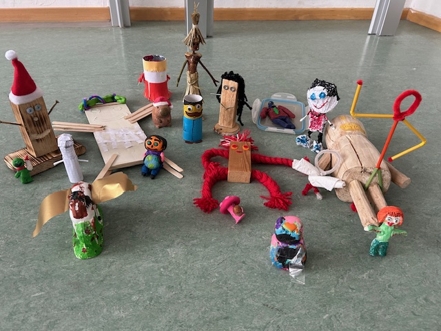 Im Religionsunterricht der 5. Klassen setzten sich die evangelischen Schüler mit der Frage auseinander, was es bedeutet, als Geschöpf Gottes geschaffen zu sein. Biblische Texte wie 1. Mose 2,7 und 1. Mose 1,27 bildeten die Grundlage, um die besondere Beziehung zwischen Gott und Mensch zu entdecken. Die Schüler gestalteten Fantasiefiguren aus Ton oder anderen Materialien. Dabei konnten sie ihrer Kreativität freien Lauf lassen und lernten, ihre eigenen Ideen mit meist recycelten Materialien zu verwirklichen. Beim Vorstellen der Kunstwerke wurde deutlich, wie stolz und erfreut die Schüler über ihre Ergebnisse waren. Wertvolle Fähigkeiten wie Kreativität, Geduld und der Umgang mit verschiedenen Materialien wurden geschult. Die Schüler erfuhren, wie erfüllend es ist, selbst schöpferisch tätig zu sein und ihre Gestaltungskraft zu erleben. Besonders viel Freude bereitete ihnen das kreative Arbeiten und das Präsentieren der Werke.