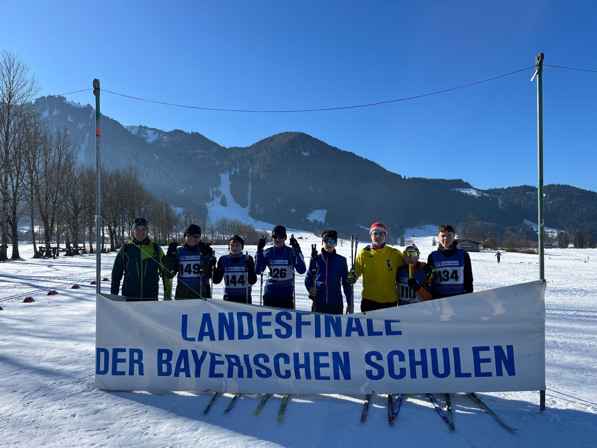 Unsere Schulmannschaft Langlauf durfte in diesem Jahr am zweitägigen Landesfinale der bayerischen Schulen in Lenggries teilnehmen. Bei strahlendem Sonnenschein und bestens organisierten Wettkämpfen erlebten alle Beteiligten zwei rundum gelungene Tage im Schnee. Besonders spannend war es, die vielen starken Teams anderer Schulen – unter anderem aus Traunstein, Marquartstein, Garmisch und Sonthofen – in Aktion zu sehen. Für unsere beiden Mannschaften war es eine tolle und interessante Erfahrung, sich mit so vielen hervorragenden Langläufern zu messen – und der Spaß kam dabei natürlich nicht zu kurz!