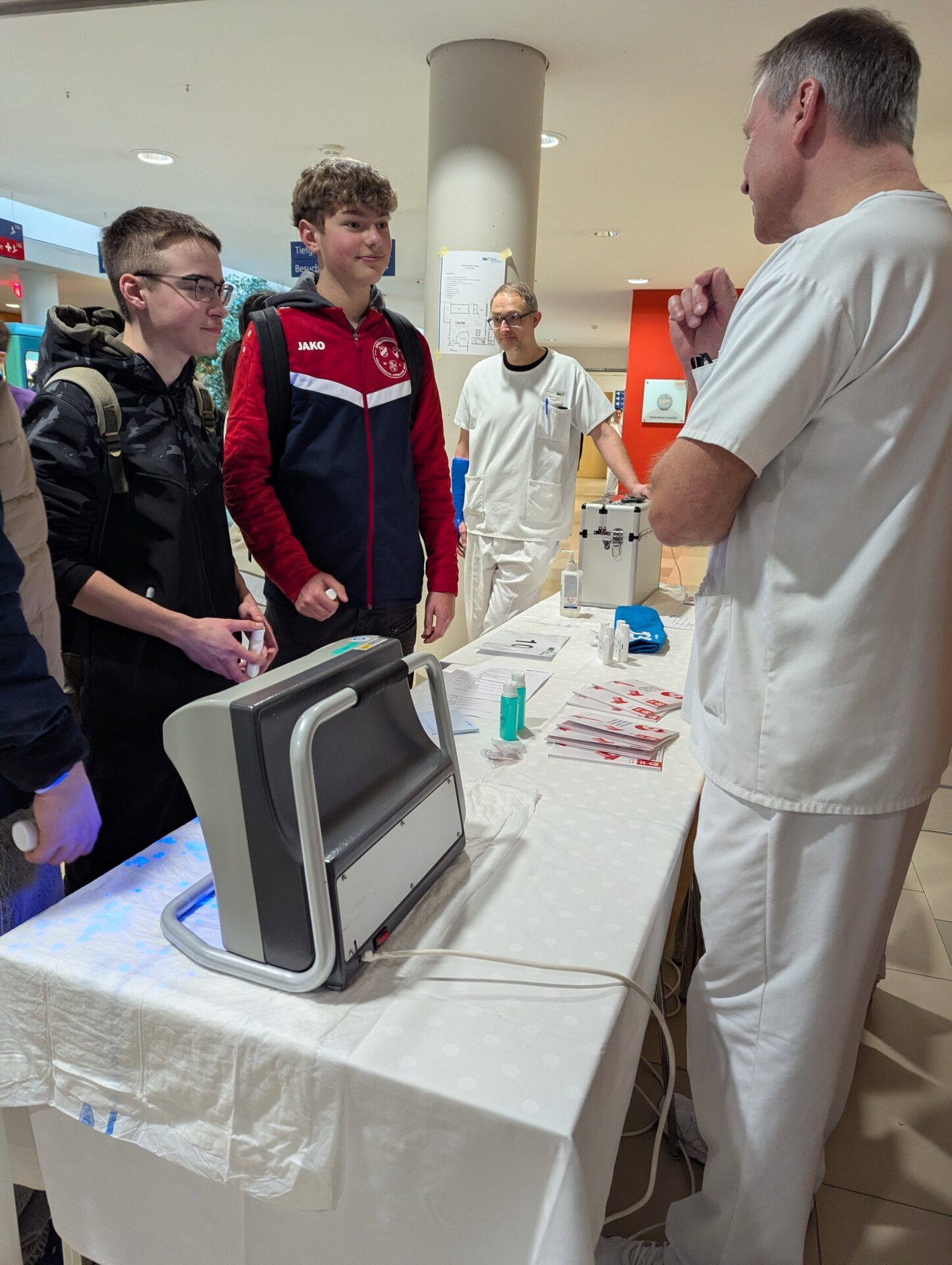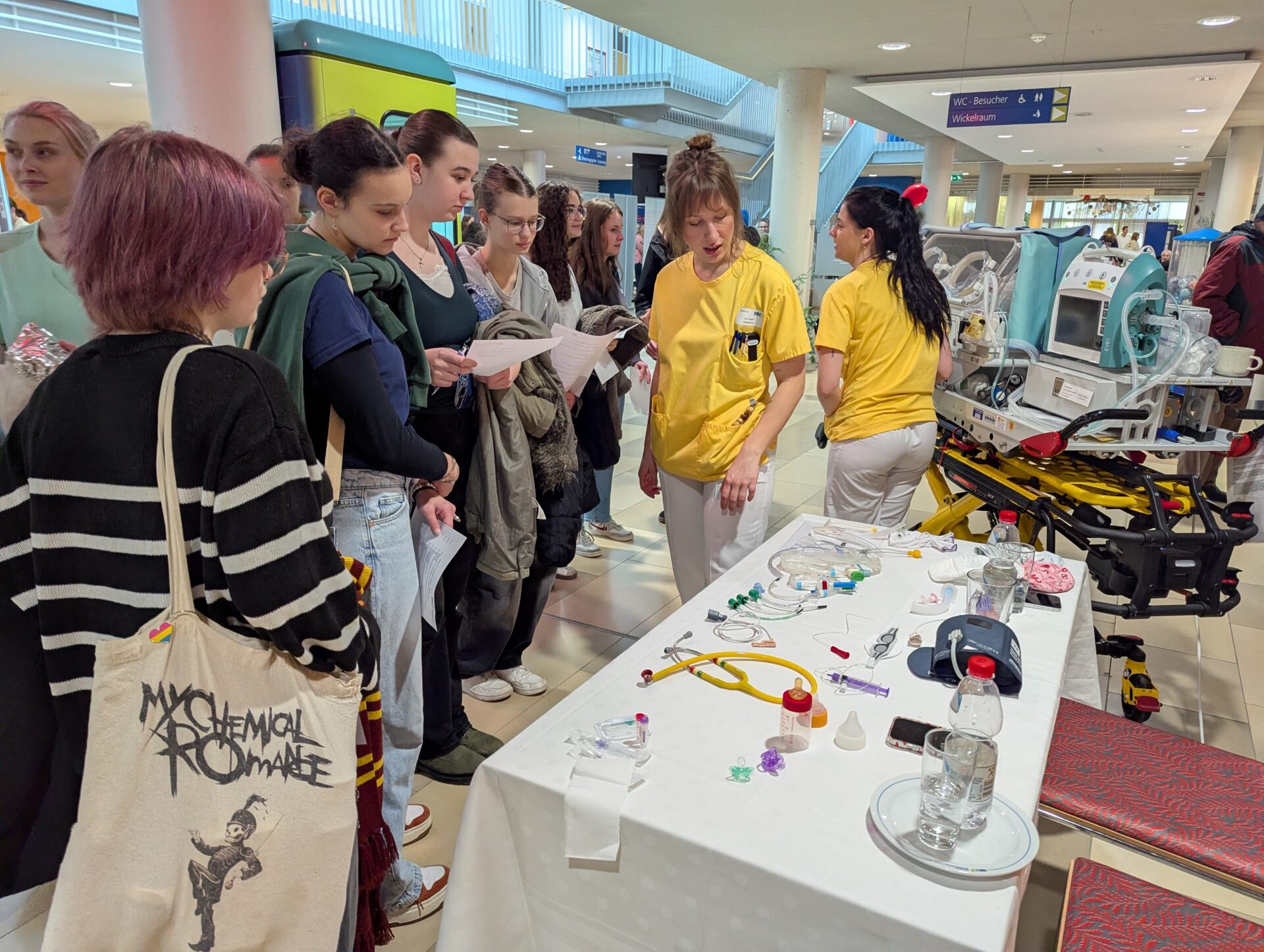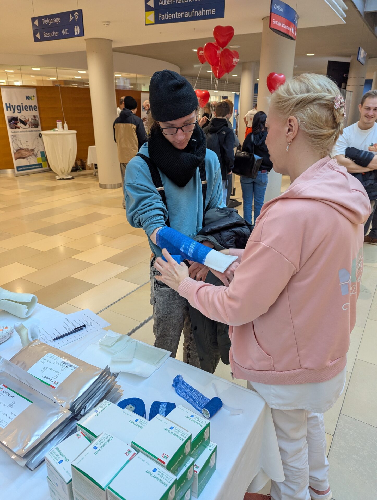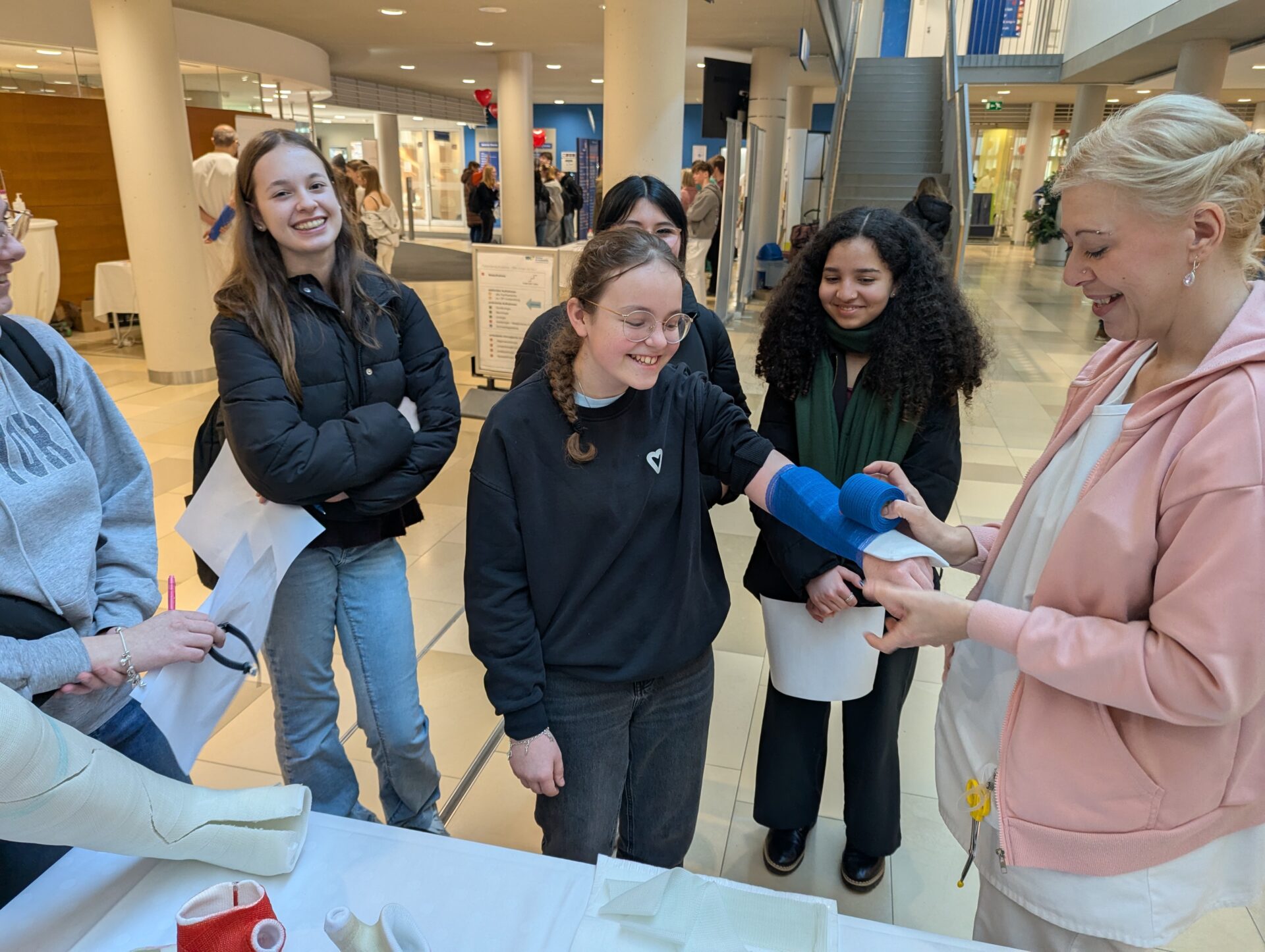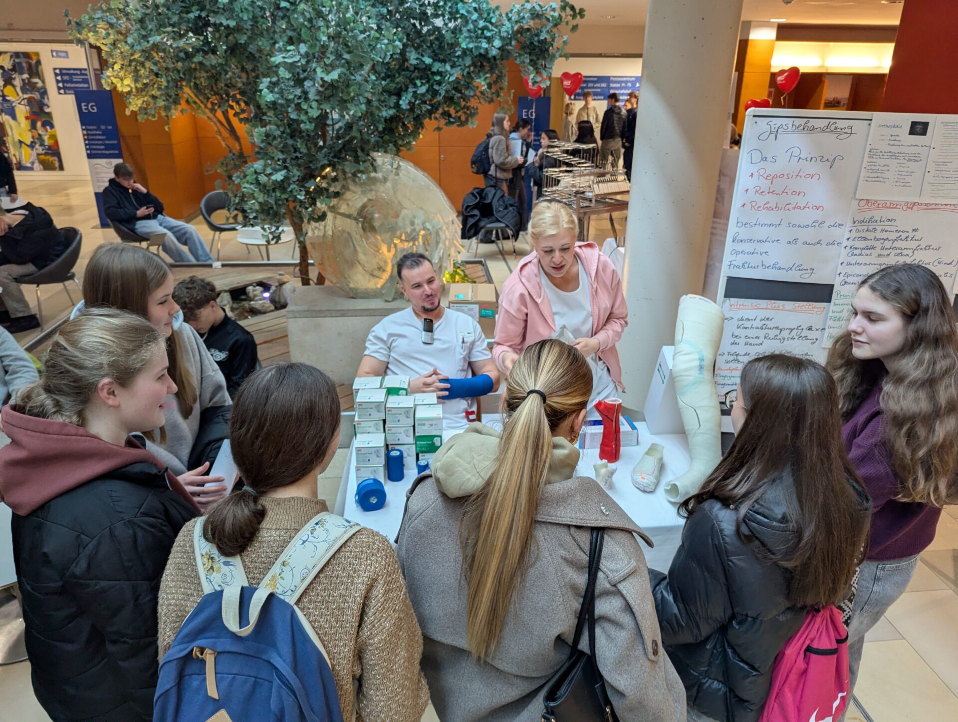Weiden. Einen außergewöhnlichen Schultag erlebten die Schülerinnen und Schüler der neunten Jahrgangsstufe der Lobkowitz-Realschule: Statt Unterricht im Klassenzimmer stand ein praxisnaher Einblick in die Welt der sozialen Berufe auf dem Programm. Insgesamt 145 Jugendliche besuchten das Klinikum Weiden, um dort die vielfältigen Tätigkeiten im Gesundheitswesen kennenzulernen. Unter dem Motto „Ausprobieren statt nur Zuhören“ konnten die Jugendlichen verschiedene Stationen durchlaufen und dabei selbst aktiv werden. So lernten sie beispielsweise, wie eine Reanimation durchgeführt wird und welche Schritte bei einer Wiederbelebung entscheidend sind. An einer weiteren Station durften sie sich um die Betreuung eines Neugeborenen kümmern – natürlich zunächst an einer Übungspuppe. Hier erfuhren sie, wie wichtig Geduld, Verantwortungsbewusstsein und Einfühlungsvermögen im Umgang mit Säuglingen sind. Auch medizinisch-technische Aspekte standen auf dem Programm: Die Schülerinnen und Schüler konnten das Herz-Kreislauf-System überprüfen, Blutdruck messen oder erfahren, wie hygienisches Arbeiten im Klinikalltag funktioniert. Besonders spannend war für viele das Anlegen eines Gipsverbandes. Unter Anleitung von Fachpersonal lernten sie Schritt für Schritt, wie ein verletzter Arm fachgerecht eingegipst wird. Ebenso übten sie das richtige Desinfizieren der Hände – eine scheinbar einfache, im Klinikbetrieb jedoch äußerst wichtige Tätigkeit. Betreut wurden die Jugendlichen von Mitarbeitenden aus verschiedenen Bereichen des Klinikums, darunter Pflegekräfte, medizinische Fachangestellte und Auszubildende. Diese berichteten aus ihrem Berufsalltag, erklärten Ausbildungswege und beantworteten zahlreiche Fragen der Schülerinnen und Schüler. Der Praxistag zeigte eindrucksvoll, wie vielfältig soziale und medizinische Berufe sind. Gerade in einer Phase, in der viele Jugendliche beginnen, sich mit ihrer beruflichen Zukunft auseinanderzusetzen, sind solche direkten Einblicke besonders wertvoll. Realbegegnungen mit der Arbeitswelt helfen dabei, eigene Interessen, Stärken und auch mögliche Schwächen besser einzuschätzen. Für viele der Neuntklässler war der Tag im Klinikum daher mehr als nur ein spannender Ausflug. Er bot die Chance, neue Perspektiven zu entdecken und vielleicht sogar den ersten Schritt in Richtung einer späteren Berufswahl zu machen. Die Kombination aus praktischem Ausprobieren, persönlichem Austausch und realistischen Eindrücken machte den besonderen Schultag zu einer wichtigen Erfahrung auf dem Weg in die berufliche Zukunft.