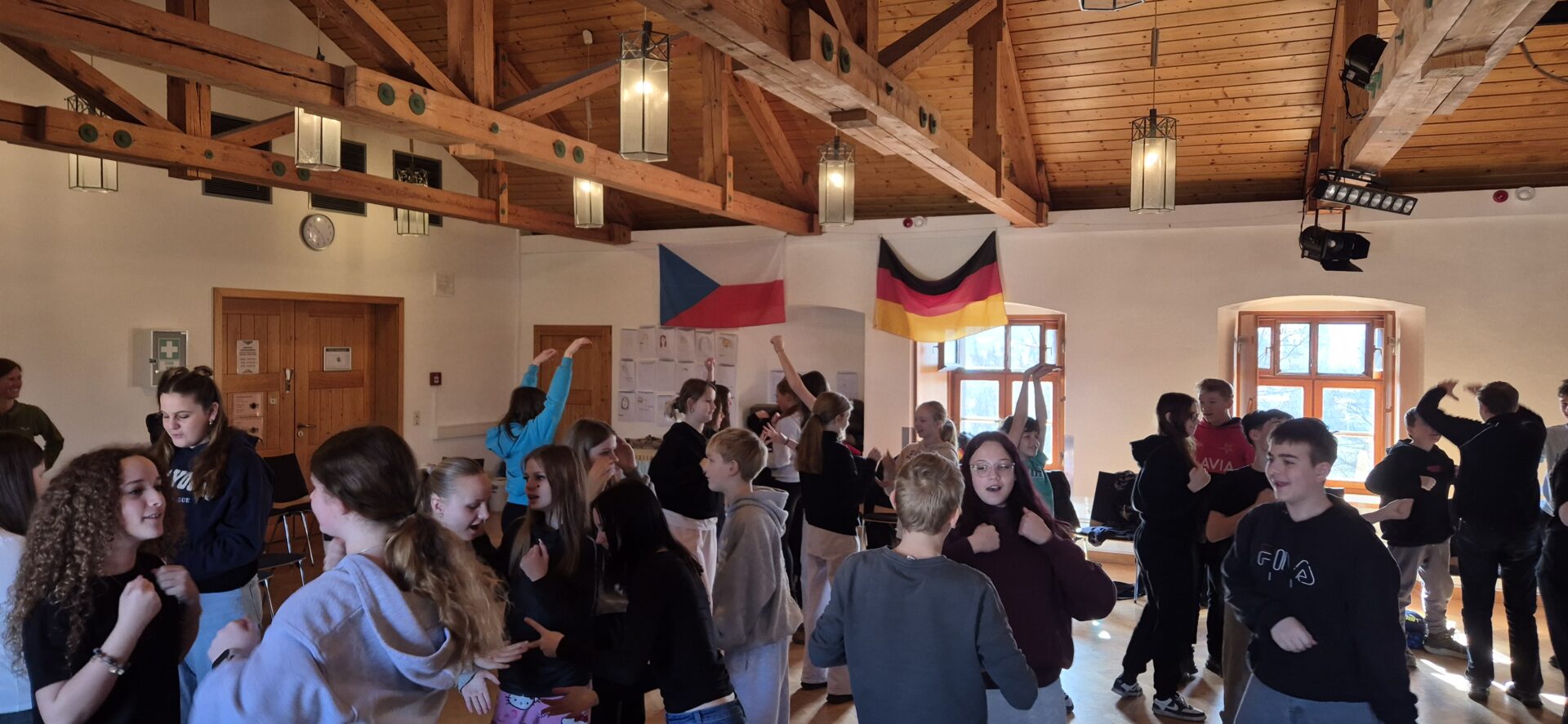 Schon seit 15 Jahren finden ein Austauschprogramm und regelmäßige Treffen zwischen der Lobkowitz-Realschule Neustadt und der Základní škola F.L.Čelakovského in Strakonice statt. Im März 2026 trafen sich erneut zwei siebte Klassen der beiden Schulen, um in der Jugendbildungsstätte Waldmünchen fünf Tage lang ein wenig die andere Sprache kennenzulernen, interkulturelle Kompetenzen zu erwerben und bei herrlichstem Wetter miteinander Zeit zu verbringen. Das große Oberthema war dieses Jahr Wellbeing und Nachhaltigkeit. Folgerichtig verbrachten die Gruppen ausgiebig Zeit mit gemeinsamen Aktionen in der Natur. Sie lernten viel über und reflektierten ihren eigenen Umgang mit Stress und erhielten Einblicke in ein bewusstes Wahrnehmen der Natur und dessen Einfluss auf uns Menschen. Eine besondere Herausforderung war der Aufstieg auf den Čerchov, mit 1042 m n.m. der höchste Berg des Oberpfälzer Waldes (Český les). Selbst die sporterprobten Schülerinnen und Schüler kamen da ganz schön ins Schnaufen. Der atemberaubende Blick von oben und die geschichtlich interessanten Aussichtsanlagen des Kalten Krieges entschädigten aber für die Strapazen – und das exzellente Essen in der Berghütte hat hierbei bestimmt auch nicht geschadet. Am letzten Tag mussten die Schülerinnen und Schüler dann ihre während der ersten Tage gewonnene Vertrautheit mit den Partnern aus Tschechien einsetzen. In internationalen Teams erstellten sie zum Beispiel wunderschön gestaltete Tagebücher der Woche, in denen sie sich kreativ mit Fotocollagen und Zeichnungen auslebten. Andere Gruppen stellten das Wissen der Teilnehmerinnen und Teilnehmer über Nachhaltigkeit und Wellbeing durch ein Kahoot!-Quiz auf die Probe. Ein rundum gelungener Abschluss einer erlebnisreichen Woche.